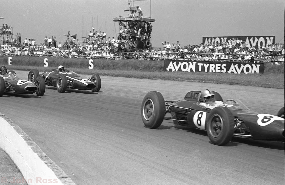 8 Jack Brabham - Brabham-Climax, 6 Bruce McLaren - Cooper-Climax, 9 Dan Gurney - Brabham Climax