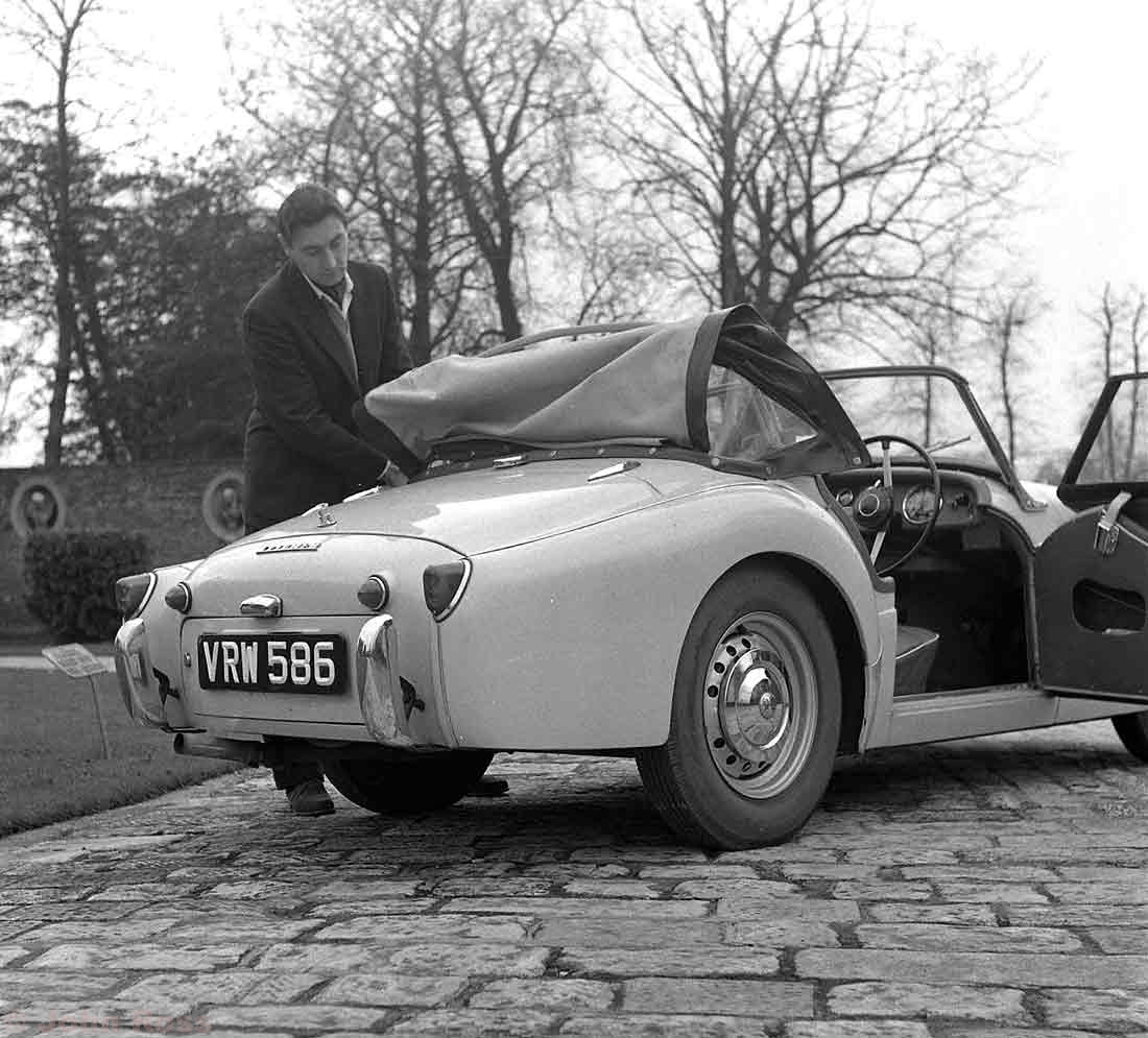 RE 336 - TR3 with Roy Salvadori fixing hood
